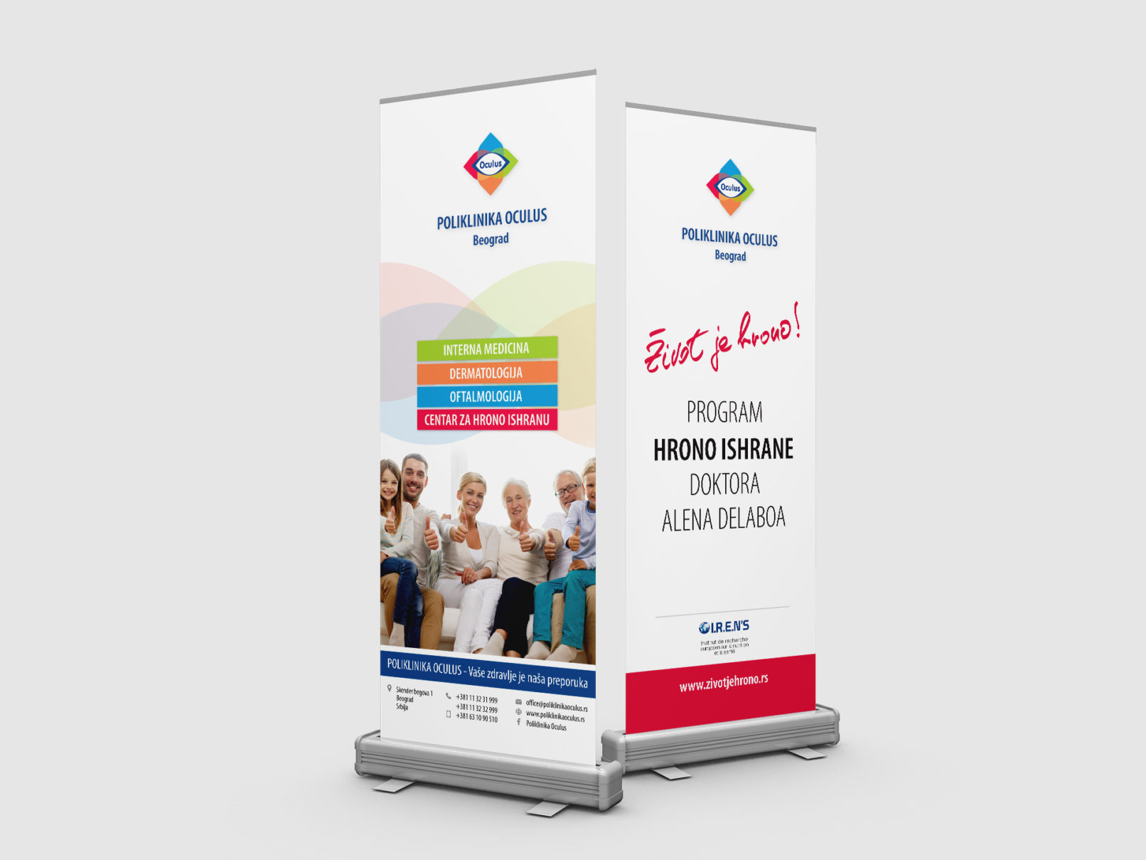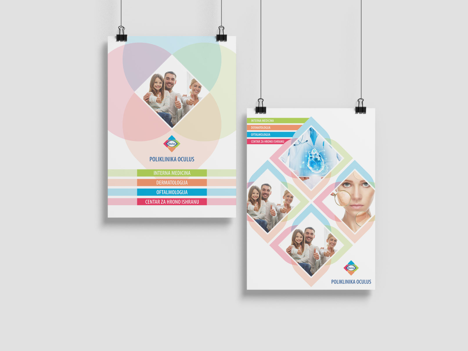Latice logotipa oko Oculus logotipa predstavljaju četiri različite oblasti medicine.